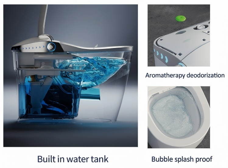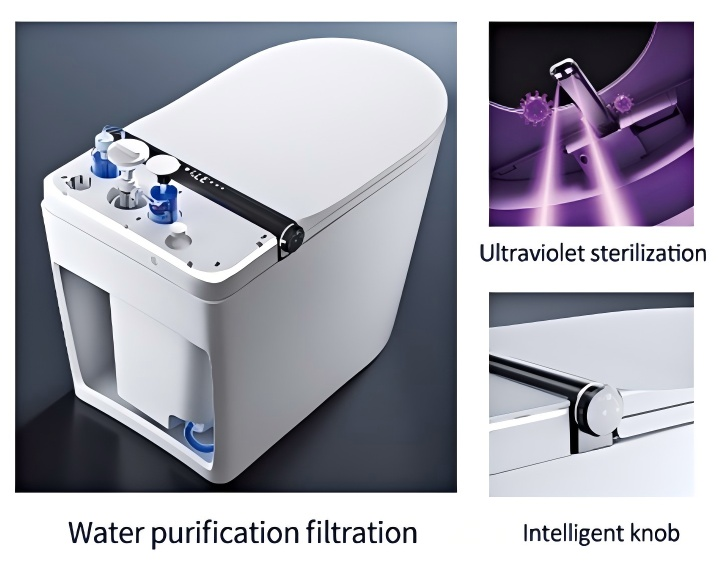Smart toilets feature self-cleaning nozzles and easy-to-wipe surfaces. Some models also include automatic deodorization and UV sterilization.